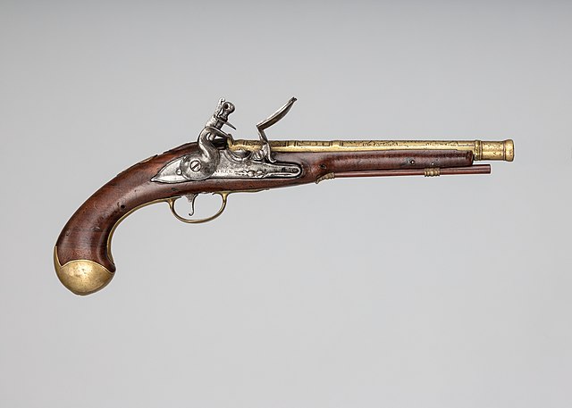 This accuracy came from the musket’s long, smooth bore barrel. Though this long barrel meant the user had to hold it with two hands, it also meant that muskets fired accurately up to 100 yards. As the user could only take a single shot before having to reload, pour more gunpowder, and reset the flintlock mechanism, accuracy was a good thing.